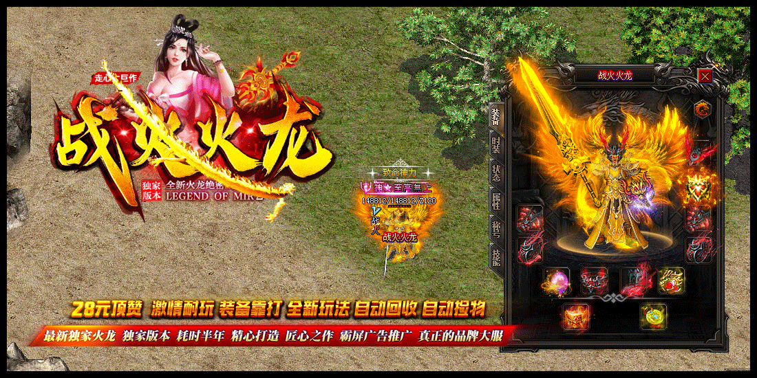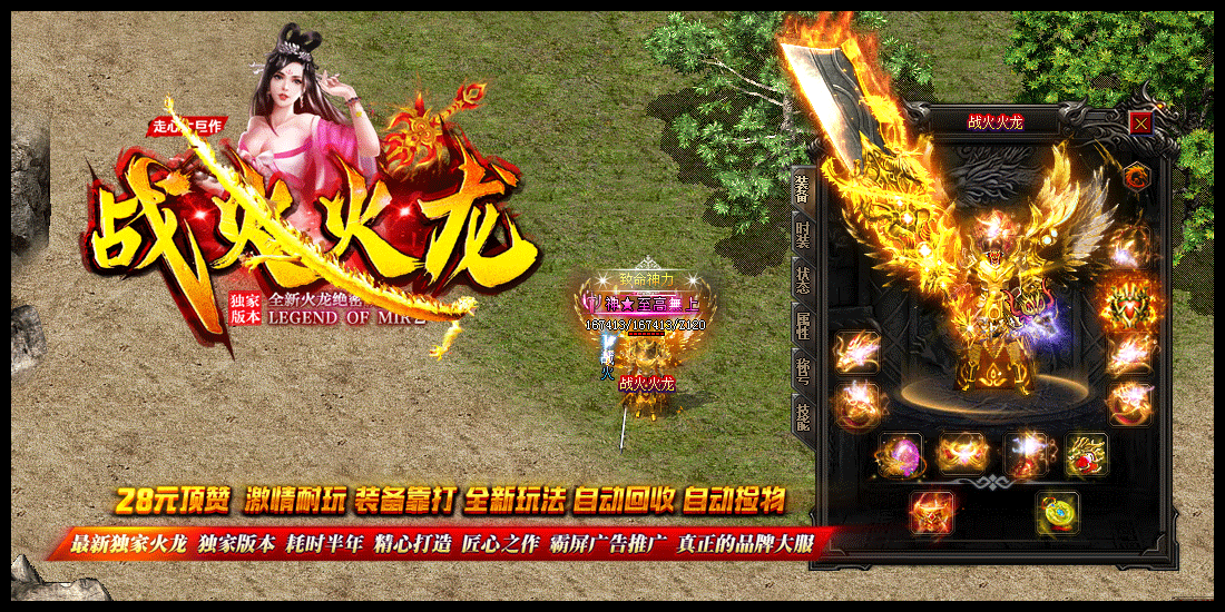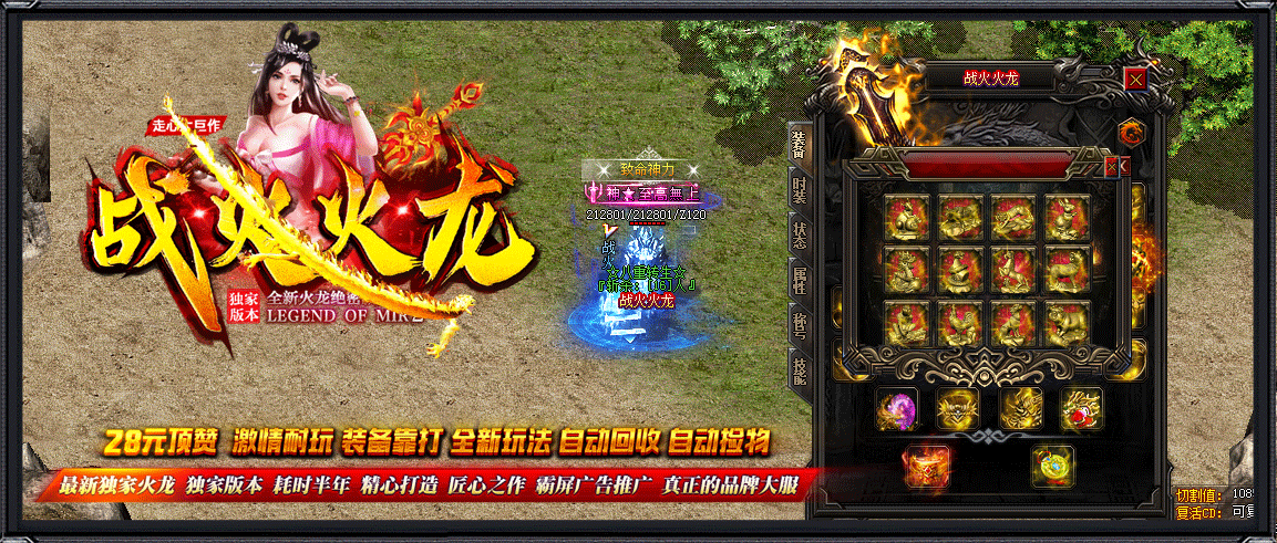6.本服装备全爆,元宝好打,自动回收,自动捡物,让你根本停不下来
